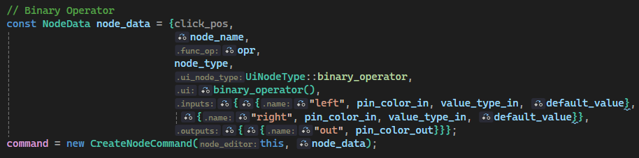 Nodethat stores information about the node itself (note that pins are nodes in the graph too), the value that it has, and other information necessary for representing it as a Lua statement. - A