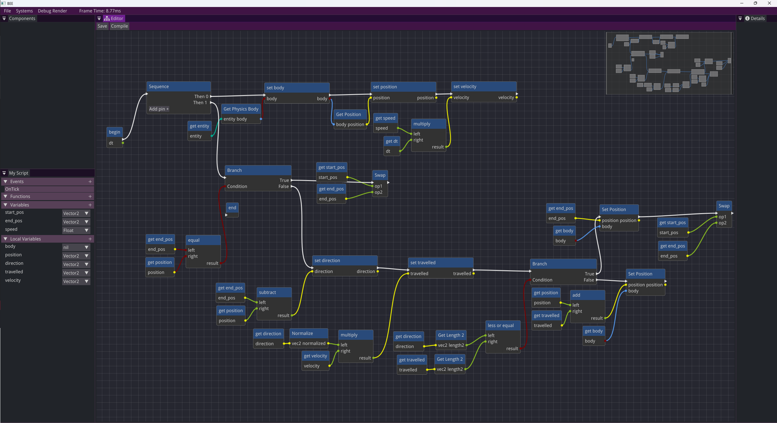 Every function and event have their own node editor that stores their graph.