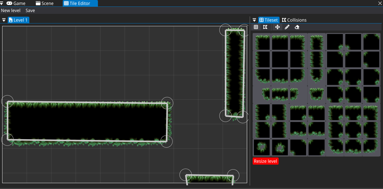 Users begin by selecting a tileset file and specifying its dimensions (rows and columns), along with the desired level size. The editor allows for intuitive "painting" of the level by selecting and placing tiles, as well as erasing them when necessary. Additional features include scrolling, zooming in and out, and resizing the map to accommodate various design requirements.