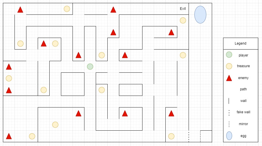 The player has to escape a dark maze full of hostile creatures that are attracted to light. He can use his flashlight and throw flares to distract them. Throughout the maze there are treasures that give the player points and more flares.